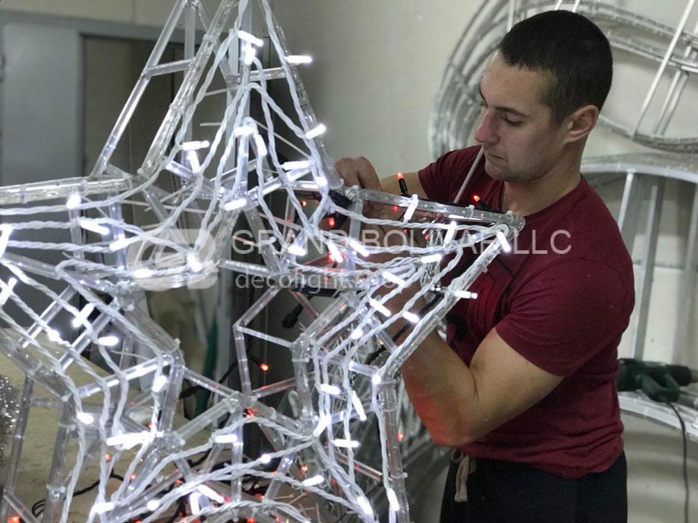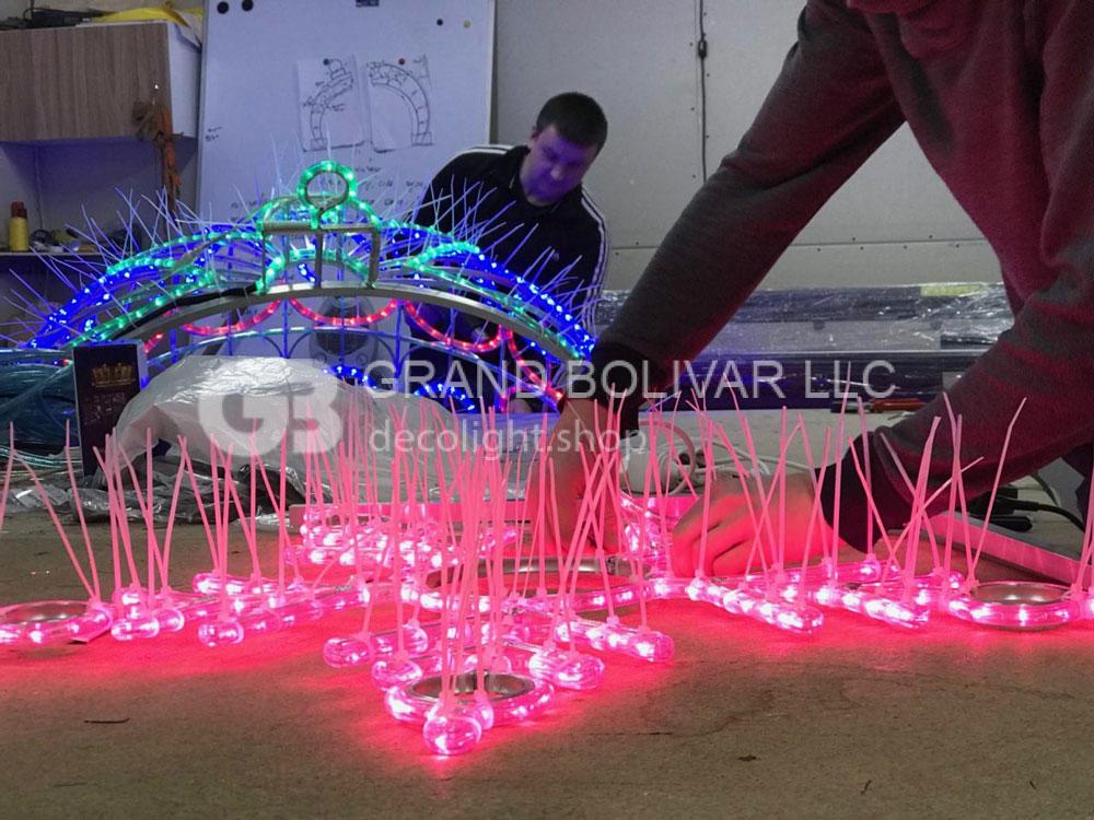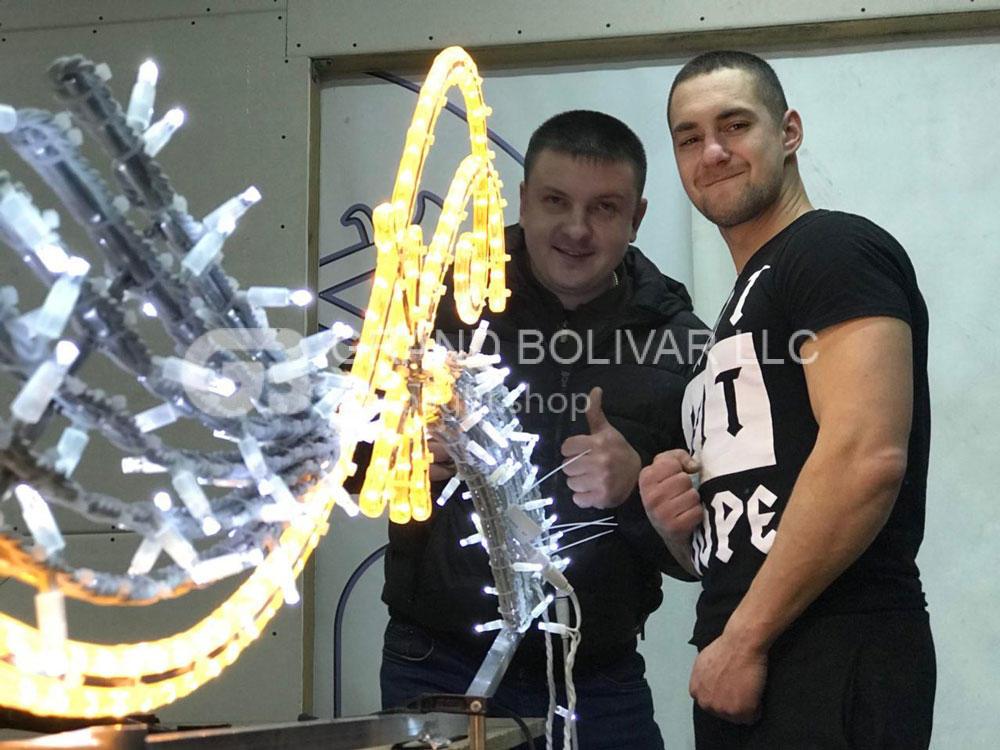 Компанія Гранд Боливар має власне виробництво, на якому в найкоротші терміни може виготовити світлові композиції або різні ексклюзивні декоративні елементи найскладнішого рівня. Ми розробляємо і виготовляємо як серійні вироби, так і ексклюзивні світлові конструкції будь-якої складності у відповідності з Вашими побажаннями. Ми так само можемо виготовити світлові конструкції за Вашими кресленнями або малюнками. В основі виробів – легкі алюмінієві каркаси і гірлянди професійних серій європейської якості, завдяки чому вироби є довговічними і якісними.
