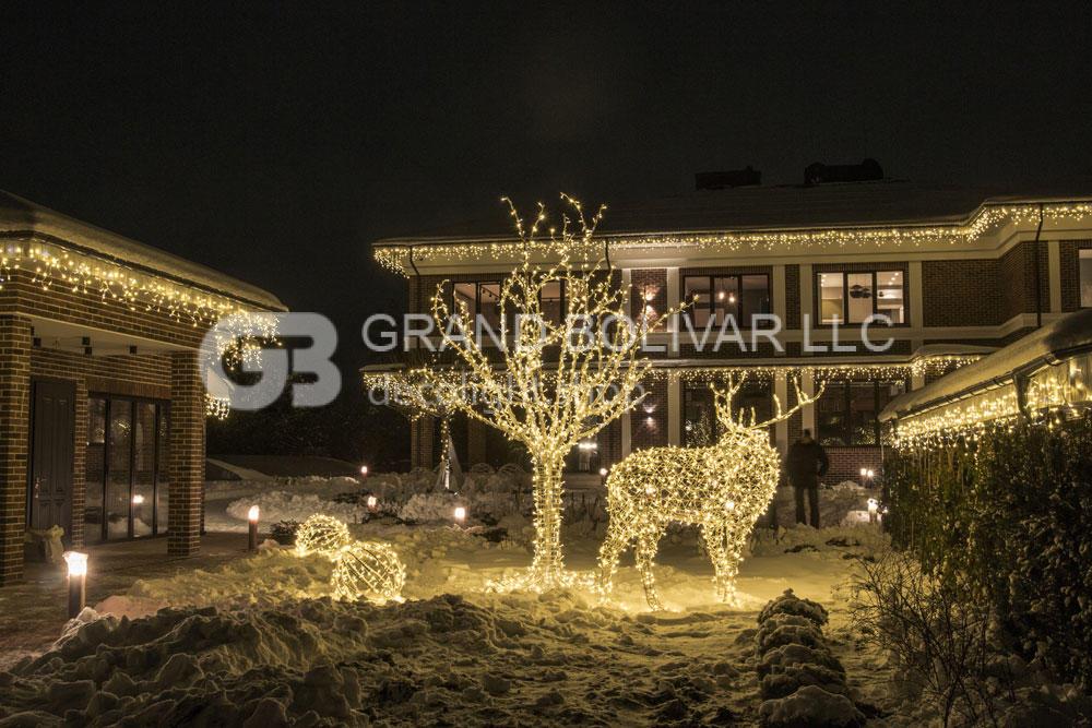 На сьогоднішній день ринок ілюмінації розвивається дуже стрімко, з’являється багато новинок. Все частіше в новорічному оформленні котеджу використовуються світлодіодні декорації та інсталяції. На прибудинковій території, розставляють світяться фігури зимових тварин – оленів, ведмедів, світлодіодні фігури сніговиків, Діда Мороза чи ялинкові кулі з подарунками.