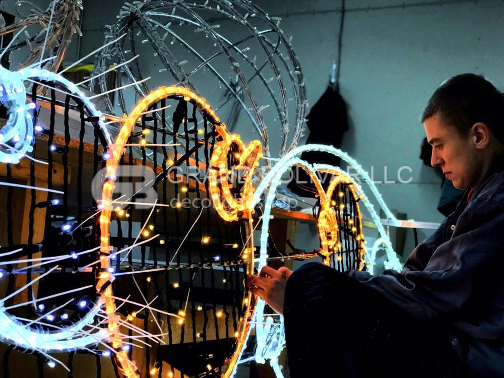 Власне виробництво світлодіодних інсталяцій і декорацій для реалізації унікального світлового оформлення.