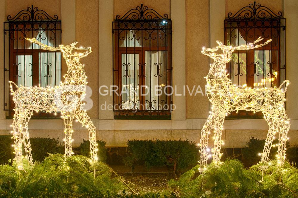 За допомогою світлодіодних різдвяних оленів, Ви можете створити неповторну атмосферу свята! Досить просто встановити дані об’ємні фігури на будь-яку рівну поверхню і підключити їх до мережі 220В! Світлові світлодіодні олені, обрані в якості декоративного новорічного оформлення, стануть чудовою прикрасою присадибних територій і ландшафтів, парків, вхідних груп торгових і розважальних центрів, готелів, ресторанів і будь-яких внутрішніх просторів.
