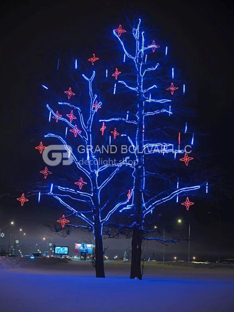 Також, листяні дерева можна прикрашати гірляндами фігурна завіса LED ICELIGHT (Ice light) і світлодіодними шторами LED CURTAINLIGHT (Drape light). Один з оригінальних і незвичайних способів оформлення дерев є оформлення мотивами, іншими словами виробами з дюралайта (світлодіодними іграшками). Дуже красиво і ефектно виглядає оформлення дерева будь-якої з перерахованих вище гірлянд з додаванням світлових фігур з дюралайта (зірки, сніжинки, дзвіночки, кулі, бурульки, логотипи та інші елементи).