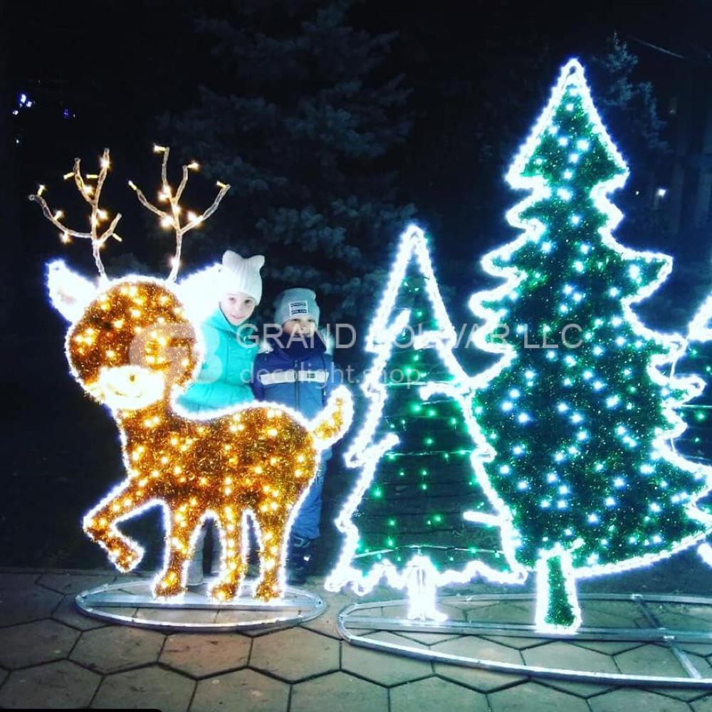 1. 3D фігура. Це об’ємний олень, таку світлодіодну фігуру рекомендуємо виготовляти не менше 1,50 м заввишки. Найоптимальніший і рекомендований нами розмір – це від 1,70 до 3 м.