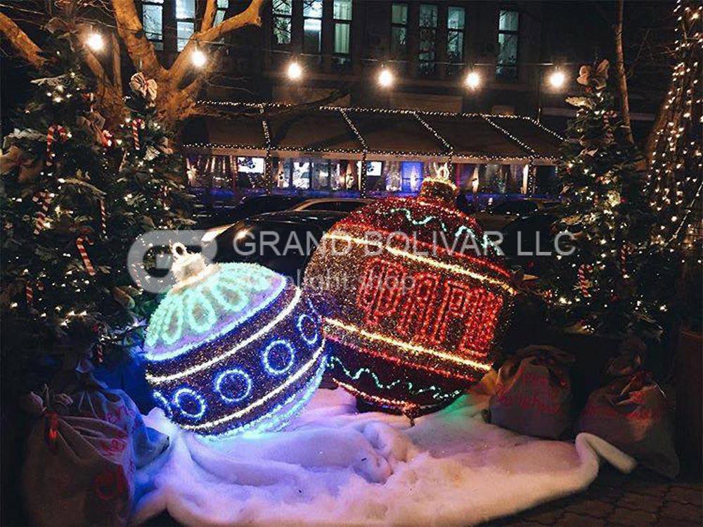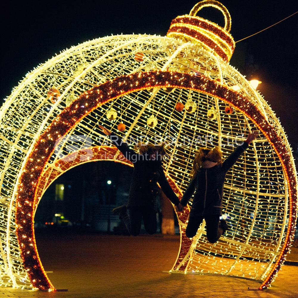 Зроблена найбільша ялинкова куля на основі алюмінієвого каркаса, прикрашена світлодіодними гірляндами і ялинковою мішурою. Розробка креслень зайняла три дні, на виготовлення новорічної інсталляції пішло два тижні.