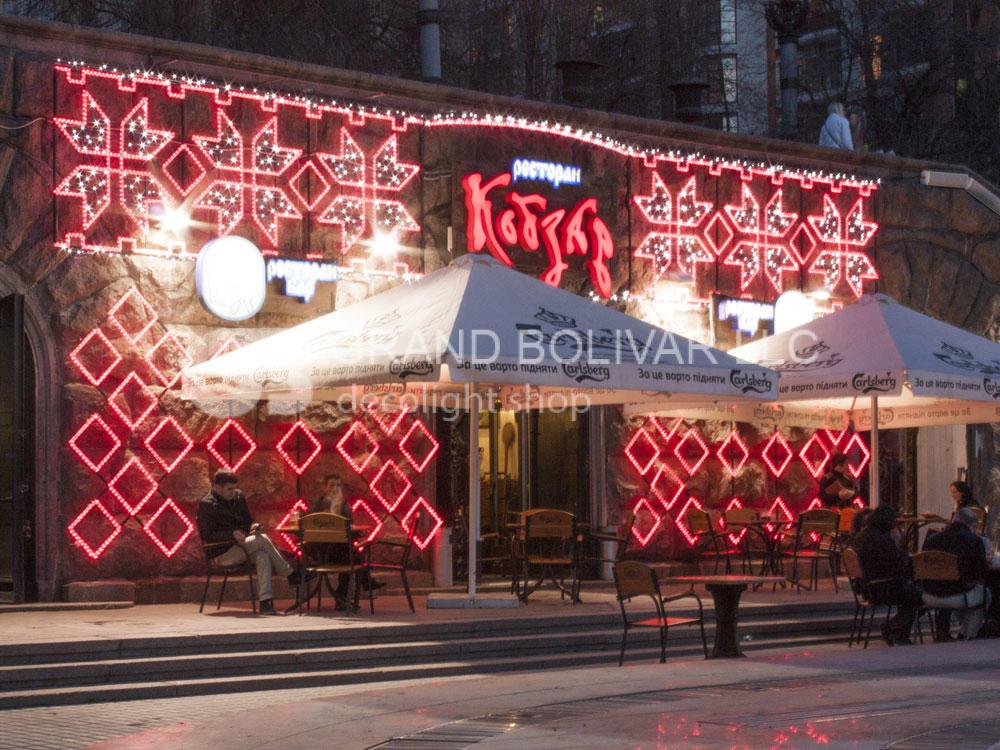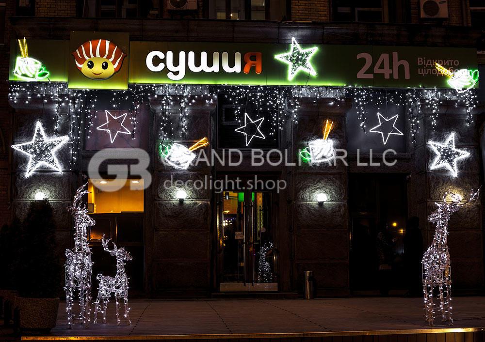 Святкова ілюмінація здатна перетворити самий стриманий фасад на казковий і яскравий, створить новий вигляд для будь-якого закладу.