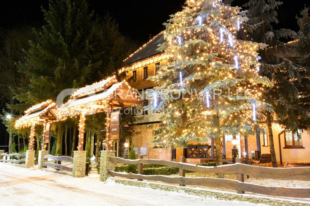 Новорічні та Різдвяні свята – чудова нагода перетворити буденний вигляд фасаду ресторану і території, зробити його по-справжньому святковим, привабливим, який запрошує увійти і зручно розташуватися.