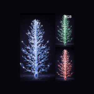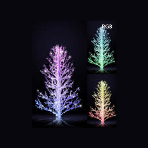 Світлодіодні RGB дерева виготовлені на алюмінієвому каркасі з використанням світлодіодних RGB гірлянд. Цей вид гірлянд має декілька готових сценарієв роботи, які можна перемикати за допомогою дистанційного пульту.