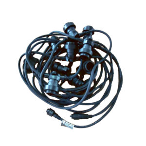 Вулична ретро гірлянда CONNECTABLE LIGHT являє собою круглий гумовий кабель, на якому на певній відстані розміщені патрони під цоколь Е27 або В22.