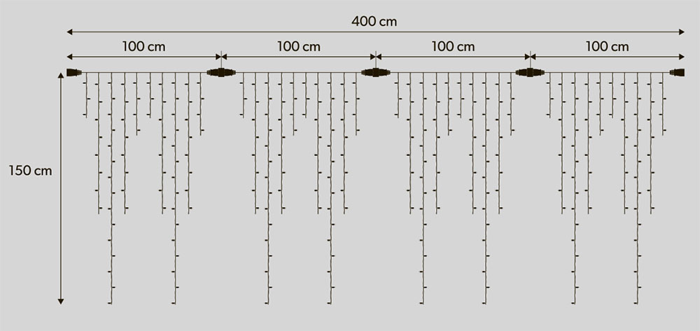 Увага! Для підключення гірлянд до електричної мережі додатково знадобляться адаптери живлення Power Kit AC/DC 23006.02, які не входять до комплектації. Кількість адаптерів розраховується в залежності від специфіки монтажу обладнання та з урахуванням обмежень щодо максимальної кількості світлодіодних гірлянд у електричному ланцюзі.