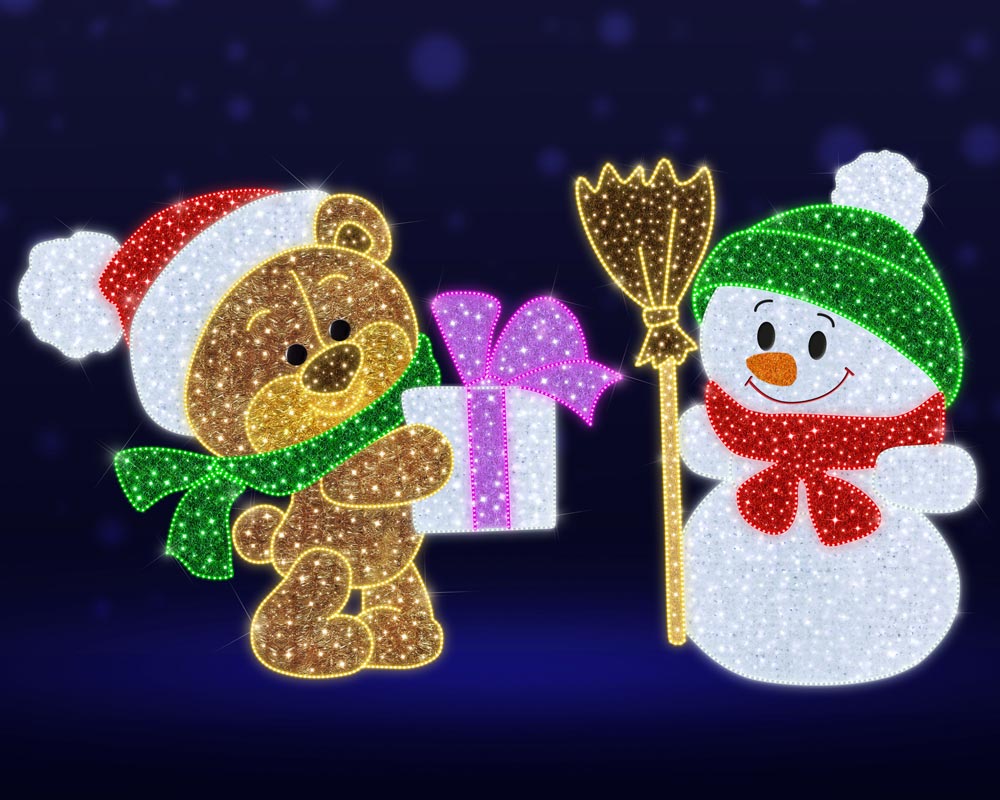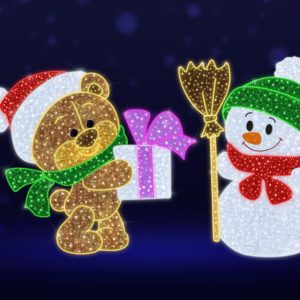 Світлодіодна фотозона "Тедді з подарунком" Розміри : 1,70м х 2,15м Потужність: 112W Вага: 19 кг