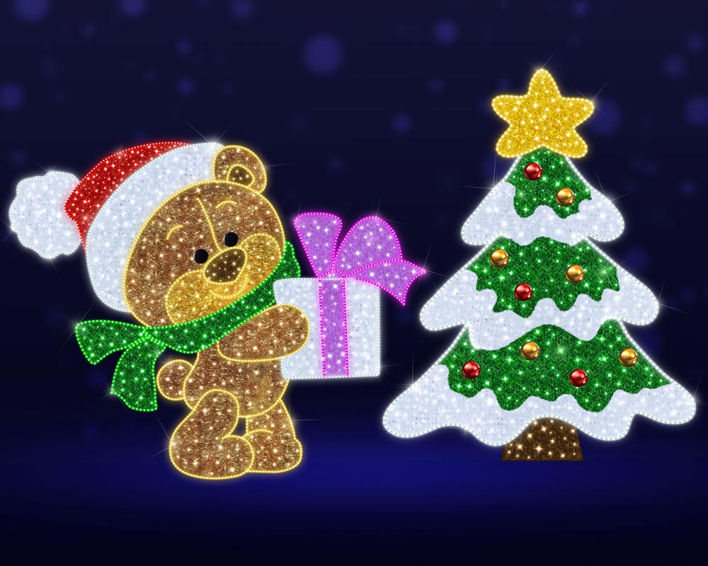 Світлодіодна фотозона "Тедді з подарунком" Розміри : 1,70м х 2,15м Потужність: 112W Вага: 19 кг
