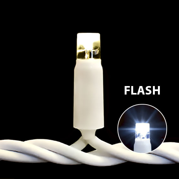 Гірлянда LED DECOLIGHT 23422.02F зібрана на білому кабелі зі світлодіодами теплого білого кольору та світлодіодами-спалахами яскравого білого (холодного) кольору.