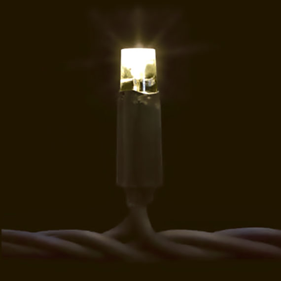 Гірлянда IP67 LED DECOLIGHT 23422.71 зібрана на чорному кабелі зі світлодіодами теплого білого кольору.