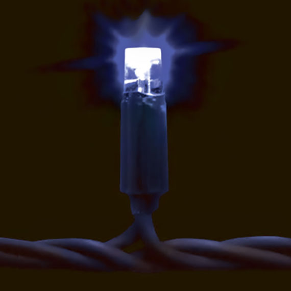 Гірлянда LED DECOLIGHT 23423.71 зібрана на чорному кабелі зі світлодіодами синього кольору.