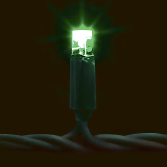 Гірлянда LED DECOLIGHT 23424.71 зібрана на чорному кабелі зі світлодіодами зеленого кольору.