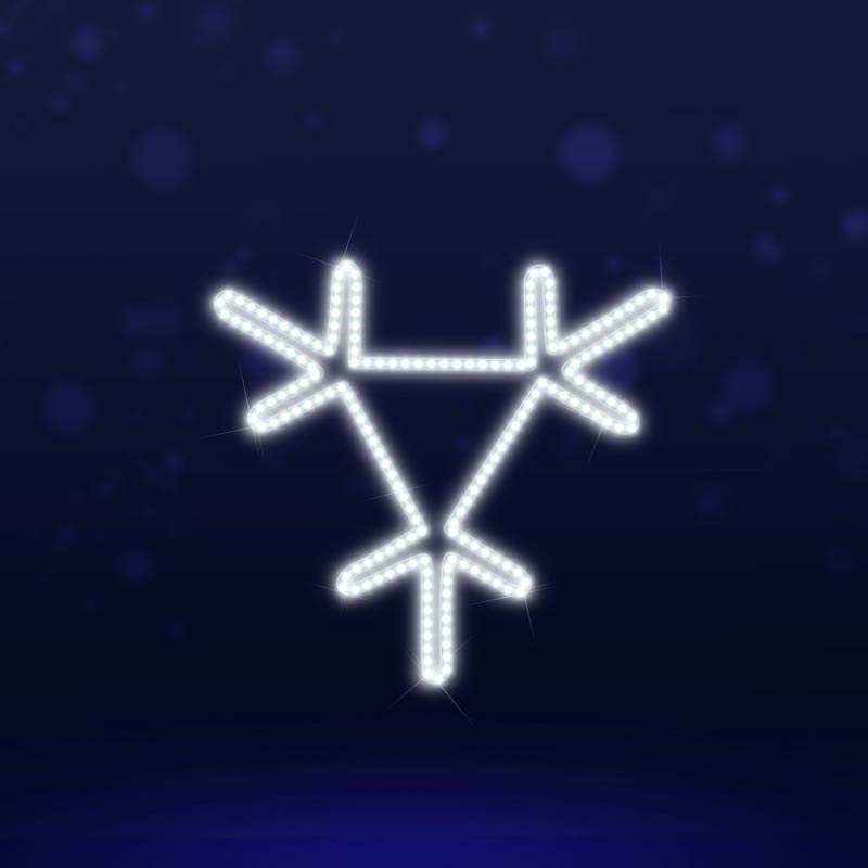 Світлодіодний мотив Сніжинка SF-004. Новорічні світлодіодні мотиви у формі сніжинок виготовлені на основі алюмінієвого каркасу у вигляді сніжинки, по контуру якого прикріплений світловий шнур дюралайт. Також можуть використовуватися і інші світлодіодні гірлянди, такі як світловий ланцюжок LED DECOLIGHT, гнучкий неон, лампи та ін.
