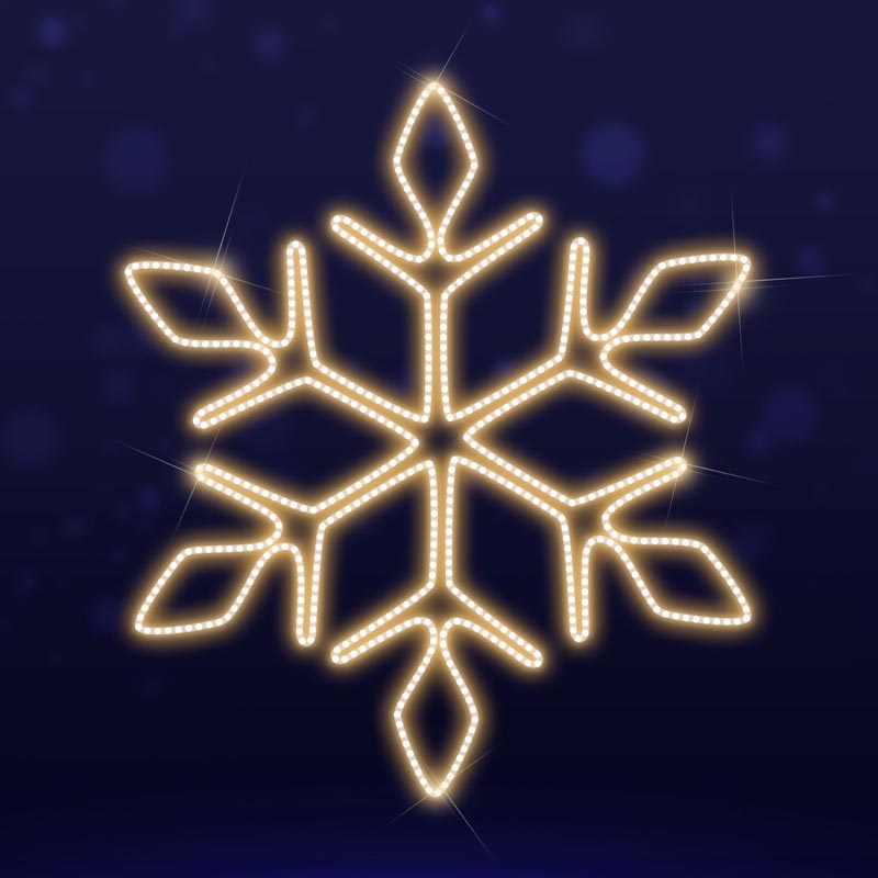 Світлодіодний мотив Сніжинка SF-009. Новорічні світлодіодні мотиви у формі сніжинок виготовлені на основі алюмінієвого каркасу у вигляді сніжинки, по контуру якого прикріплений світловий шнур дюралайт. Також можуть використовуватися і інші світлодіодні гірлянди, такі як світловий ланцюжок LED DECOLIGHT, гнучкий неон, лампи та ін.