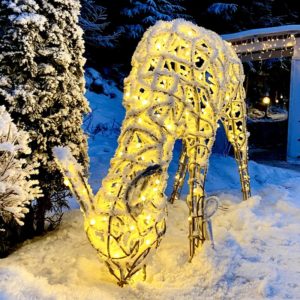 Світлові світлодіодні олені, обрані в якості декоративного новорічного оформлення, стануть чудовою прикрасою присадибних територій і ландшафтів, парків, вхідних груп торгових і розважальних центрів, готелів, ресторанів і будь-яких внутрішніх просторів. Світлодіодні олені зроблені на основі алюмінієвого каркаса із застосуванням професійних світлодіодних гірлянд європейської якості. Світлодіодні олені призначені для вуличного використання і мають високу ступінь вологозахищеності IP67, а також споживають дуже мало електроенергії, мають довгий термін служби, що дозволяє їх використовувати в постійному режимі світіння протягом тривалого часу.