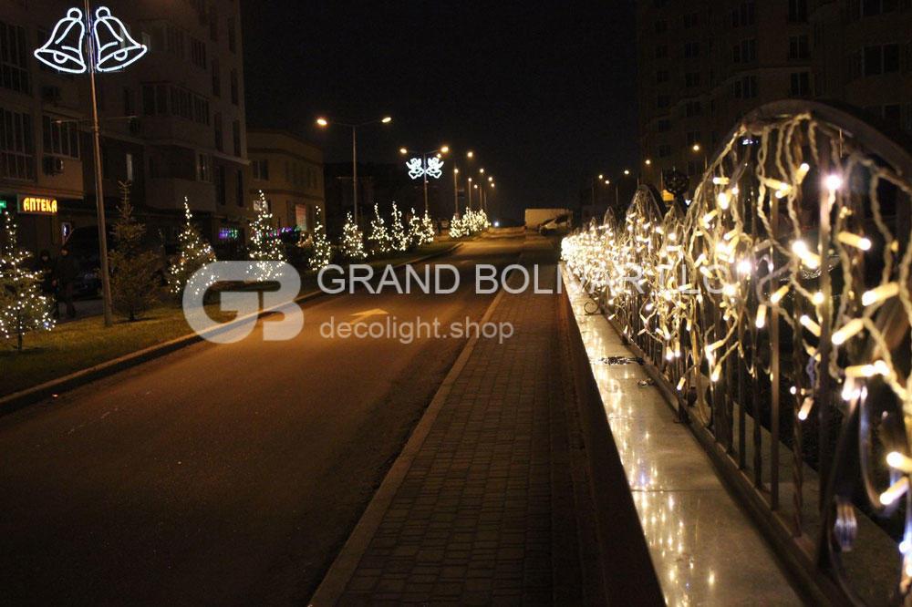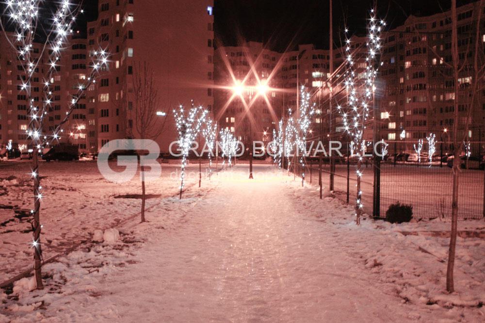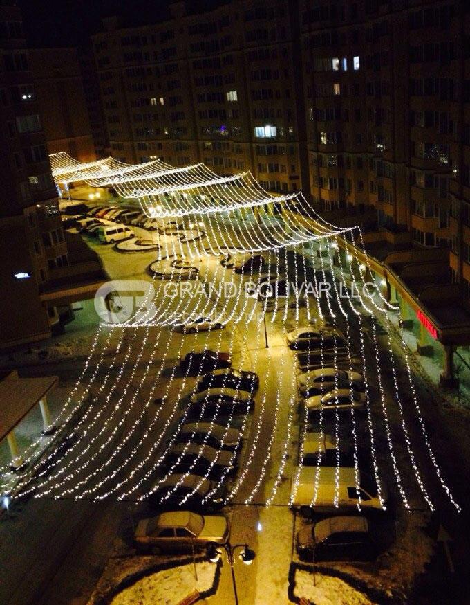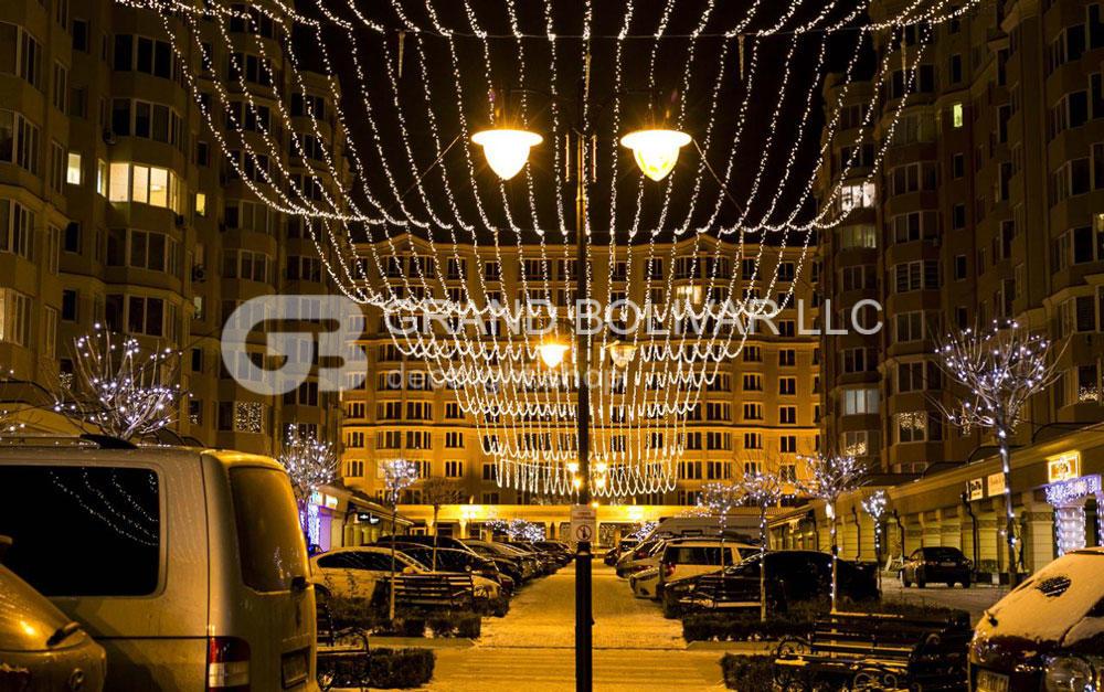 Светодиодные гирлянды с мерцающим эффектом украшают сотни деревьев и елей. Опоры на центральных улицах жилого комплекса украшают светодиодные консоли – рождественские ангелы и рождественские колокольчики. В этом году было добавлено мерцающее звездное небо над центральной аллей, множество светодиодных деревьев, огромный светодиодный фонтан и сказочные сани с упряжкой оленей.