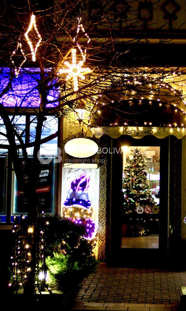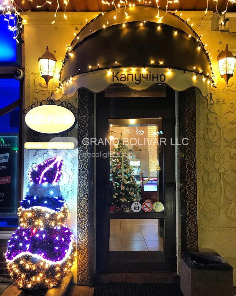 И так, мы получили, новогоднее оформление кофейни & кондитерской Капучино г.Луцк в традиционном европейском стиле для создания праздничного настроения и тёплой атмосферы.