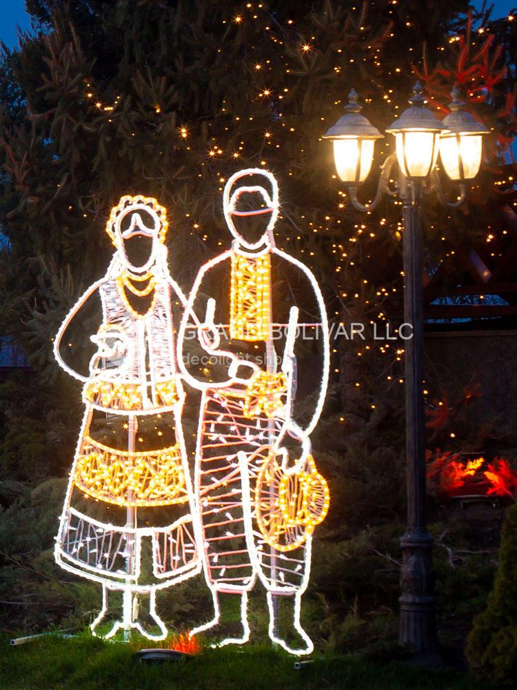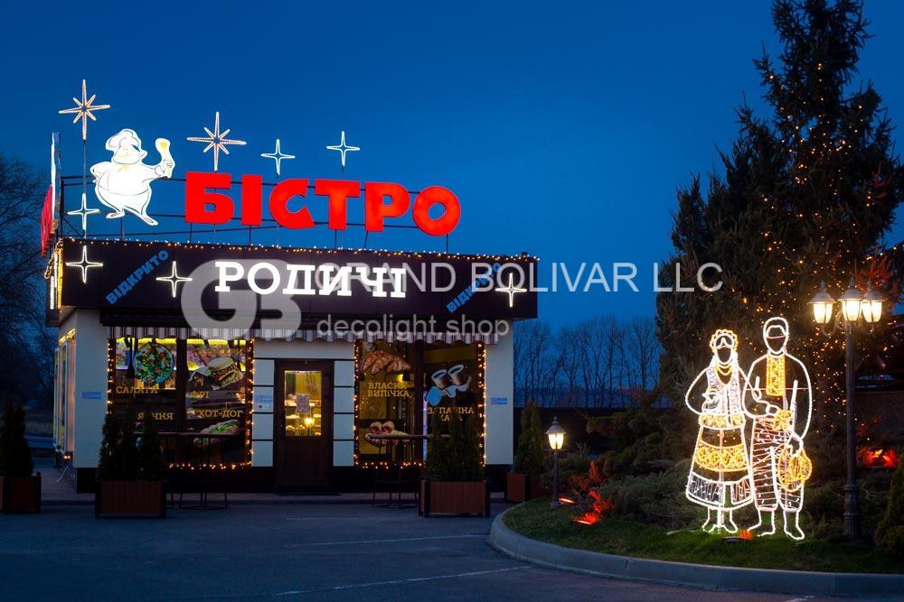 Специально для реализации этого проекта были разработаны и спроектированы эксклюзивные фигуры в виде украинцев в национальных костюмах и фотозона «Фоторамка». Светодиодные конструкции сделаны из алюминия, они не ржавеют и не требует окрашивания, а также прочные и лёгкие. В изделиях также использовались световые цепочки LED DECOLIGHT, и световой шнур LED ROPELIGHT.