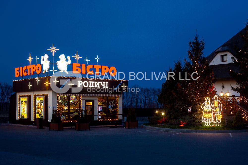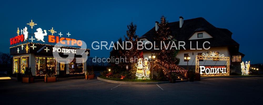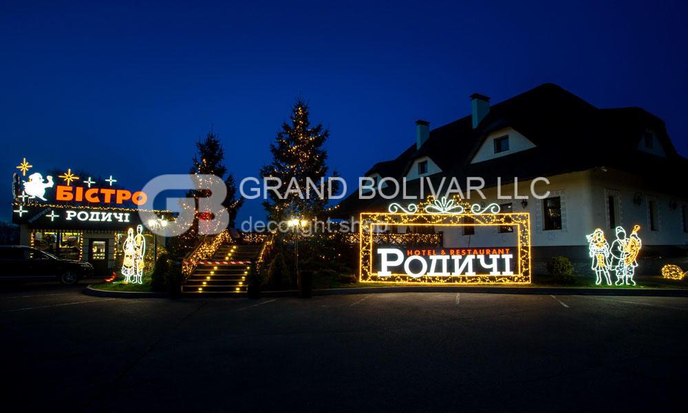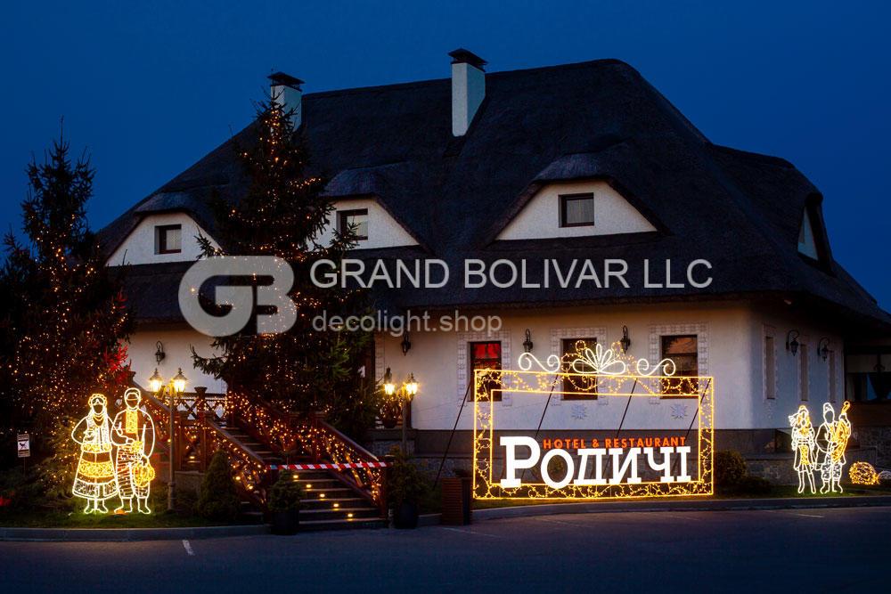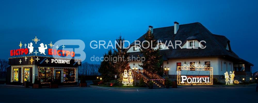 Праздничная иллюминация ресторанно-гостиничного комплекса РОДИЧИ г.Жашков