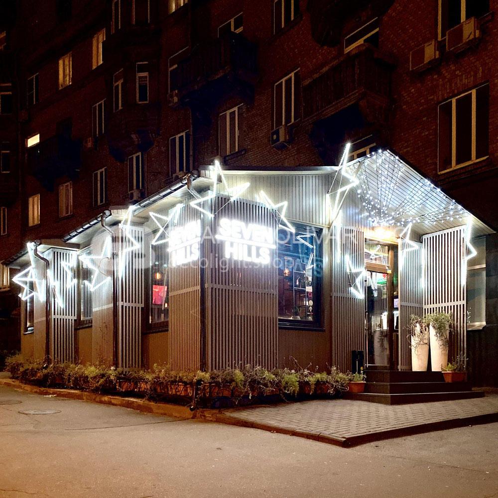 Праздничная иллюминация фасада ресторана Seven Hills получилась очень эффектная.