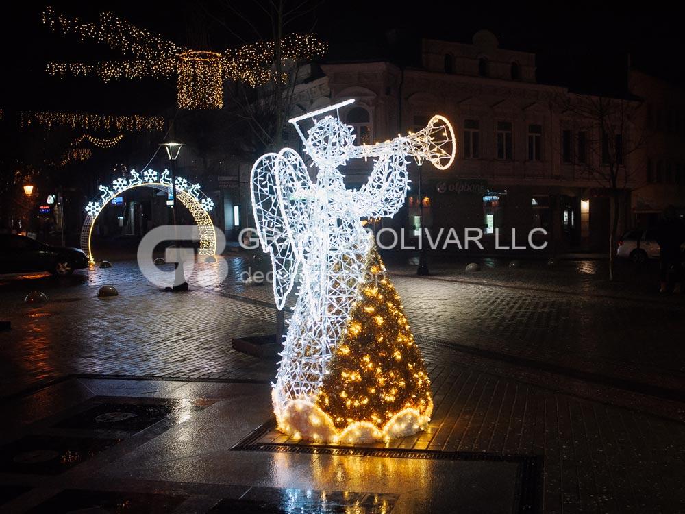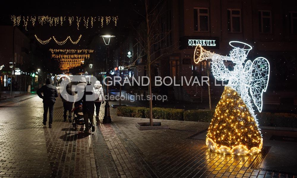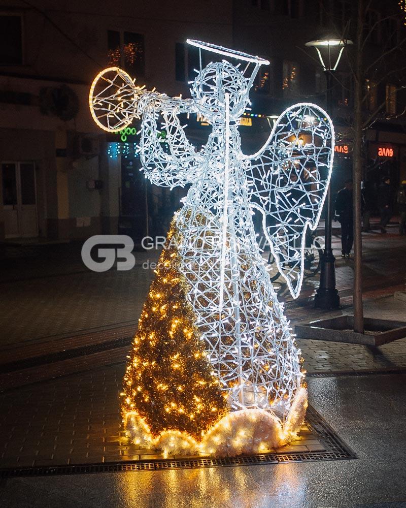 Световая фигура Рождественский ангел была установлена на площади г. Луцка к Рождеству. Ангел был главным арт-объектом, которым открывал улицу Ангелов. Высота декорации 2,5 метра. Каркас конструкции изготовлен из алюминия, он не ржавеет, лёгкий и прочный. Алюминий хорошо блестит и отражает свечение диодов, а это делает фигуру ещё ярче. Светодиодные гирлянды двух цветов, золотистая мишура подсвечивают и украшают каркас. Контуры крыльев и нимб подсвечены ярким холодным белым дюралайтом.