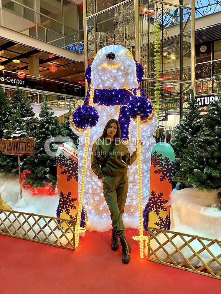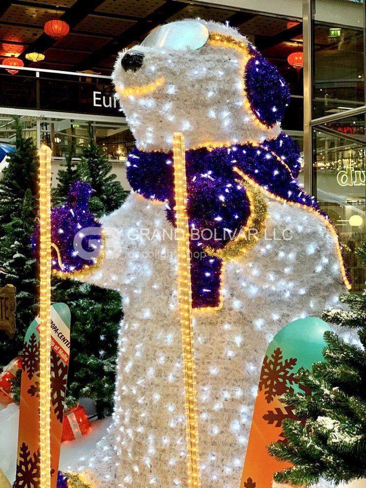 Еще для одной локации мы изготовили большого белого полярного медведя. Его размеры 2,80 х 1,65 м. Большие светодиодные декорации всегда привлекают внимание. Они поражают своими размерами и выглядят завораживающе. Возле них собираются толпы, чтобы сфотографироваться. Светодиодные фигуры пользуются большой популярностью у посетителей ТЦ и это не случайно, ведь на их фоне получаются замечательные, памятные и праздничные фото.