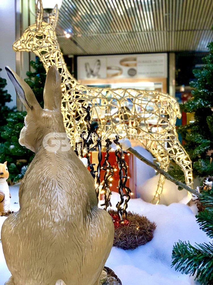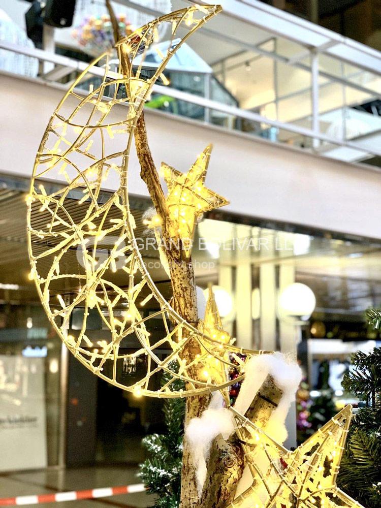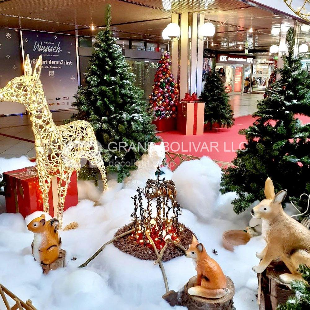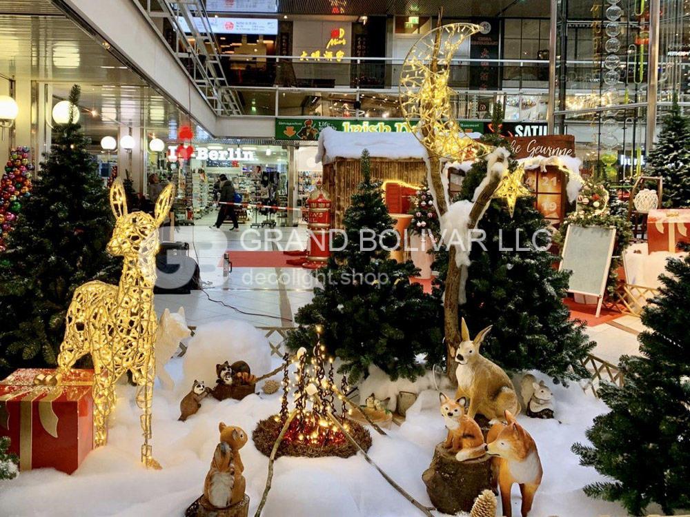 Для украшения торгового центра была разработана коллекция светодиодных оленей из пяти видов. Наши светодиодные олени изготовлены из алюминиевого каркаса, который окрашен порошковой краской в золотой цвет и светодиодных гирлянд с уровнем защиты IP 67. Светодиодные фигуры олени являются традиционными элементами новогоднего декорирования. Также были разработаны и изготовлены световые фигуры в виде лисиц, костра, луны, звезд и др.