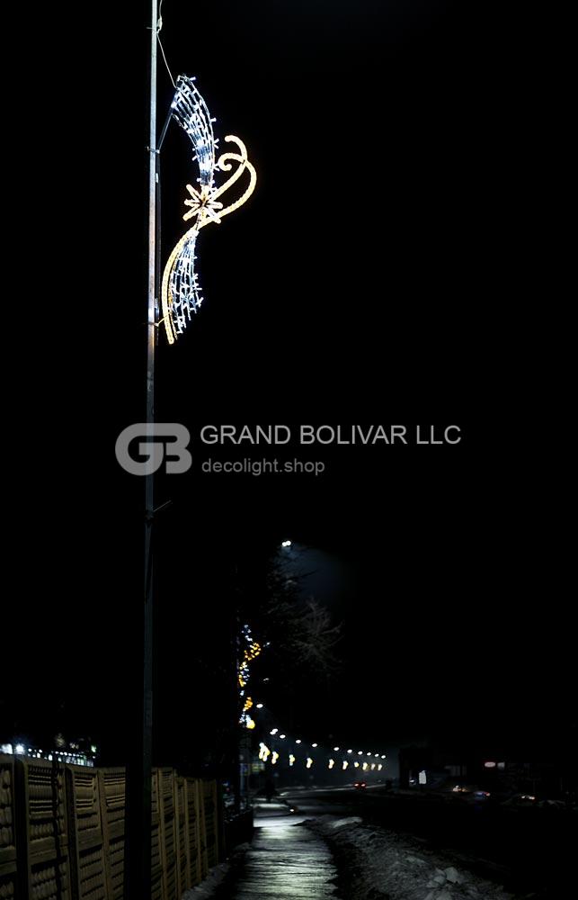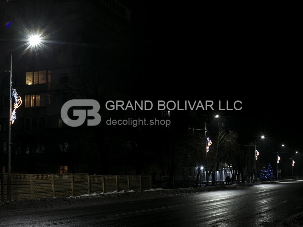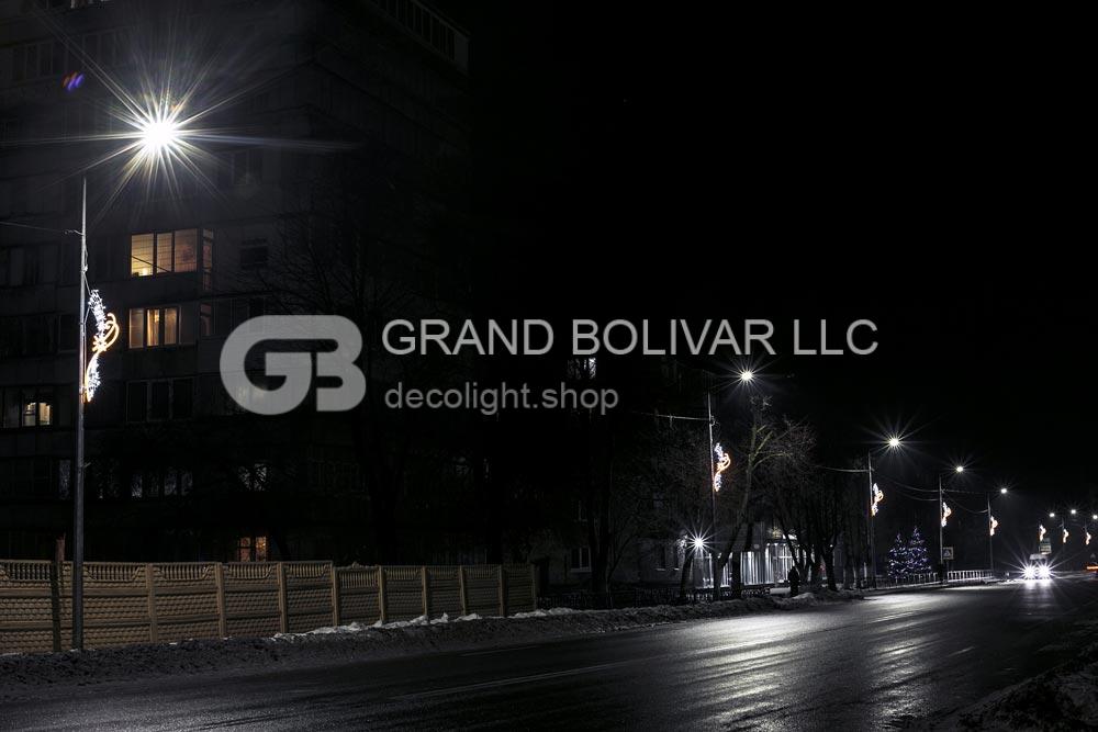 Світлові консолі прикрасили опори на центральній вулиці селища Чабани напередодні новорічних свят. Витончені і ніжні декорації виглядають святково і вишукано. Світлодіодні консолі виготовлені з легкого алюмінієвого каркаса із застосуванням світлодіодних гірлянд LED DECOLIGHT і дюралайта LED Ropelight. Стилістика даної світлодіодної консолі дозволяє використовувати їх не тільки напередодні новорічних свят, а й цілий рік.