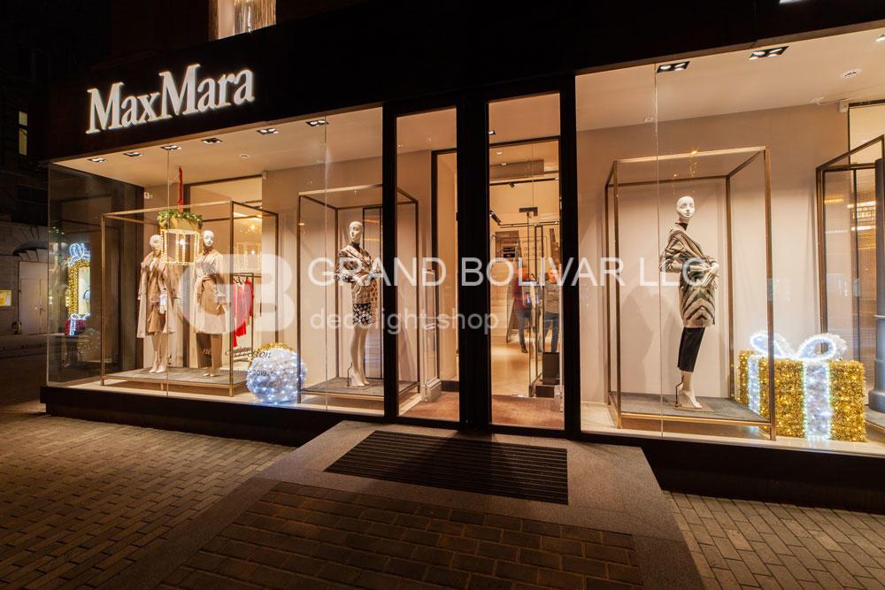 Святкова ілюмінація магазину Max Mara м.Харків доповнює вітрини і наповнює їх святковим настроєм. Світлодіодні декорації, які встановлені в вітринах магазину створюють повноцінну атмосферу свята, виглядають стильно, святково і ненав’язливо.